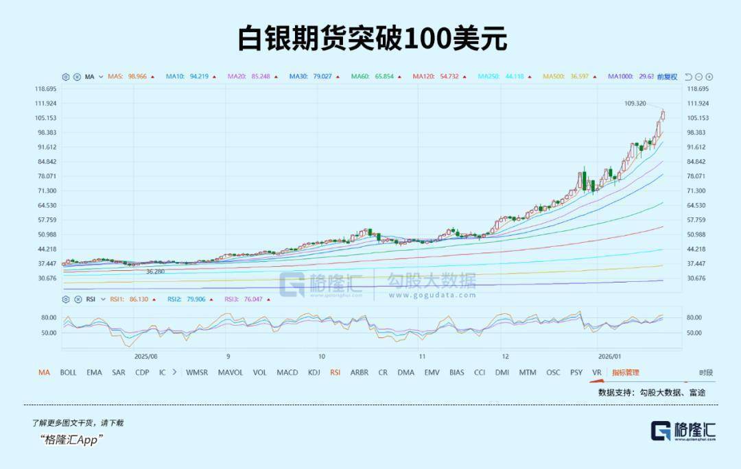 在金价冲破5000好意思元前,白银亦于上周五冲突100好意思元。