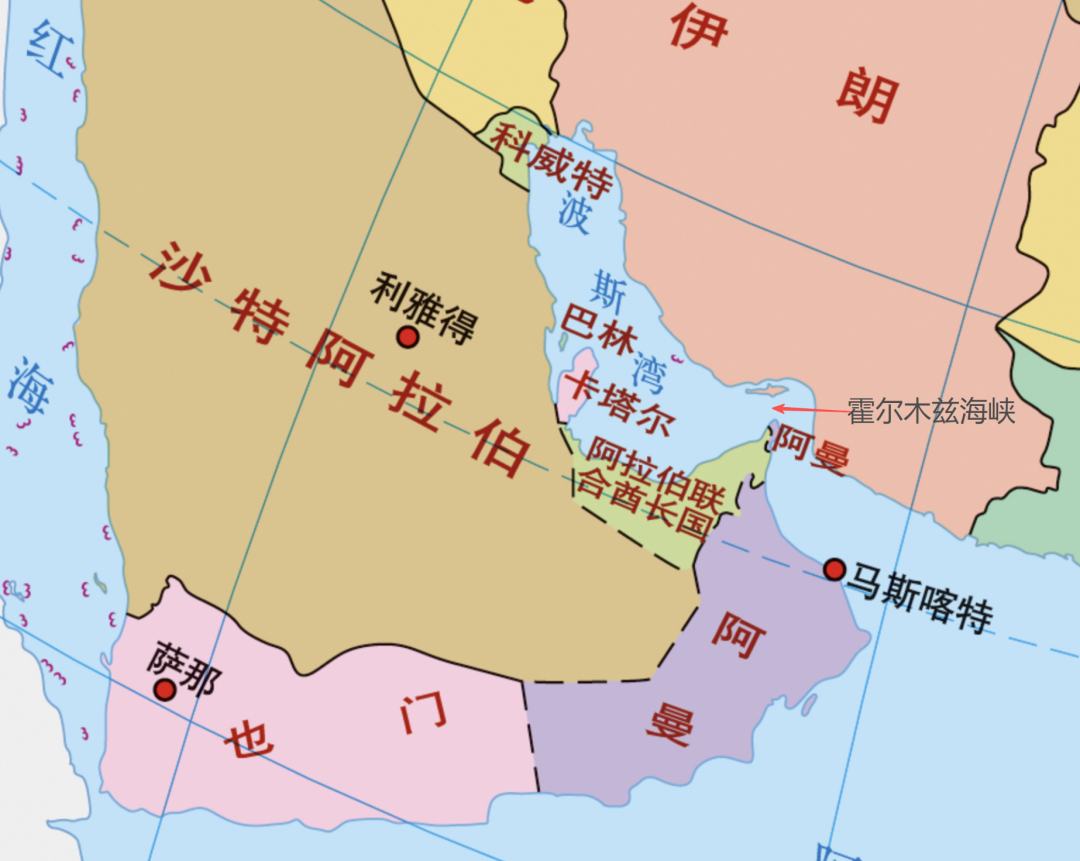 阿拉伯半岛的“靴子尖”,这个小凸起部叫作穆桑代姆半岛,它向北凸起,像一把尖楔深深插入海峡,将水说念分隔成波斯湾与阿曼湾两个所在,因此霍尔木兹海峡变成一个“东说念主”字型,出入齐要拐个大弯。