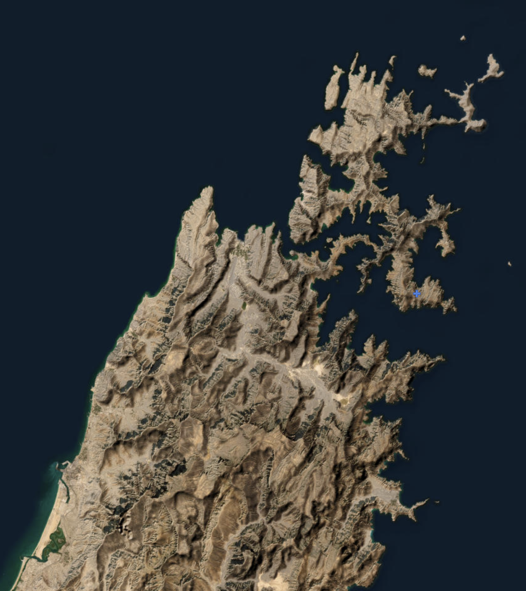 卫星舆图放大看穆桑代姆半岛,令东说念主诧异的风景出现了:半岛很尖,向北凸出,角落无序,褊狭鬈曲的海湾把陆地分得七零八落,令东说念主联念念到高纬度地区(比如挪威海岸)常见的峡湾地貌。